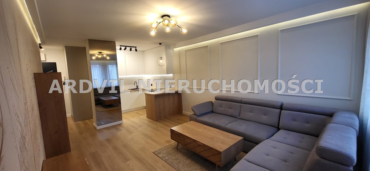 Lokal składa się z: sypialni, salonu z którego jest wyjście na duży, taras o pow. ok. 7m2, aneksu kuchennego, przestronnej łazienki z wc oraz przedpokoju. Mieszkanie zostało wykończone według najnowszych trendów i jest gotowe do wejścia. W mieszkaniu znajduje się zabudowa kuchni, wraz ze sprzętem AGD: zmywarka, lodówko-zamrażarka, płyta indukcyjna, piekarnik. Sypialnia została wyposażona w następujące meble: rozkładana sofa, szafa ubraniowa typu Komandor. W przedpokoju jest duża, pojemna szafa w zabudowie, w łazience z wc znajduje się: prysznic, szafki w zabudowie, pralka automatyczna.