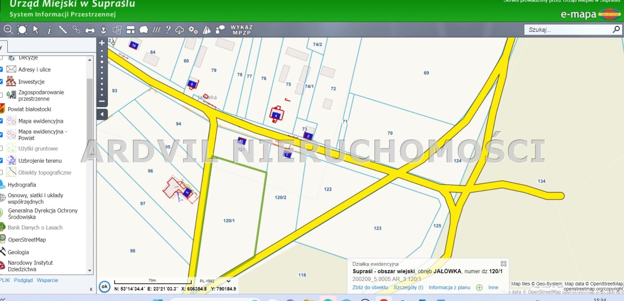Działka położona w urokliwym miejscu. W pobliżu rezerwatu przyrody Jałówka. Pod uzdrowiskowym Supraślem. Nieruchomość dla ludzi chcących odetchnąć pełną piersią na własnej dużej działce. Doskonałe wymiary 129m x 51m pozwalają na realizację naprawdę śmiałych wizji architekta. Innym pomysłem na tą działkę jest zakup inwestycyjny – podział na mniejsze parcele i sprzedaż z zyskiem.